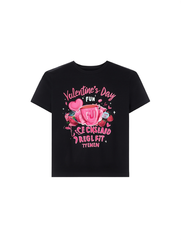 Valentine's Day Fun Printed Crew Neck T-Shirt Regular Fit Women's Top Machine Washable All Seasons Casual Style