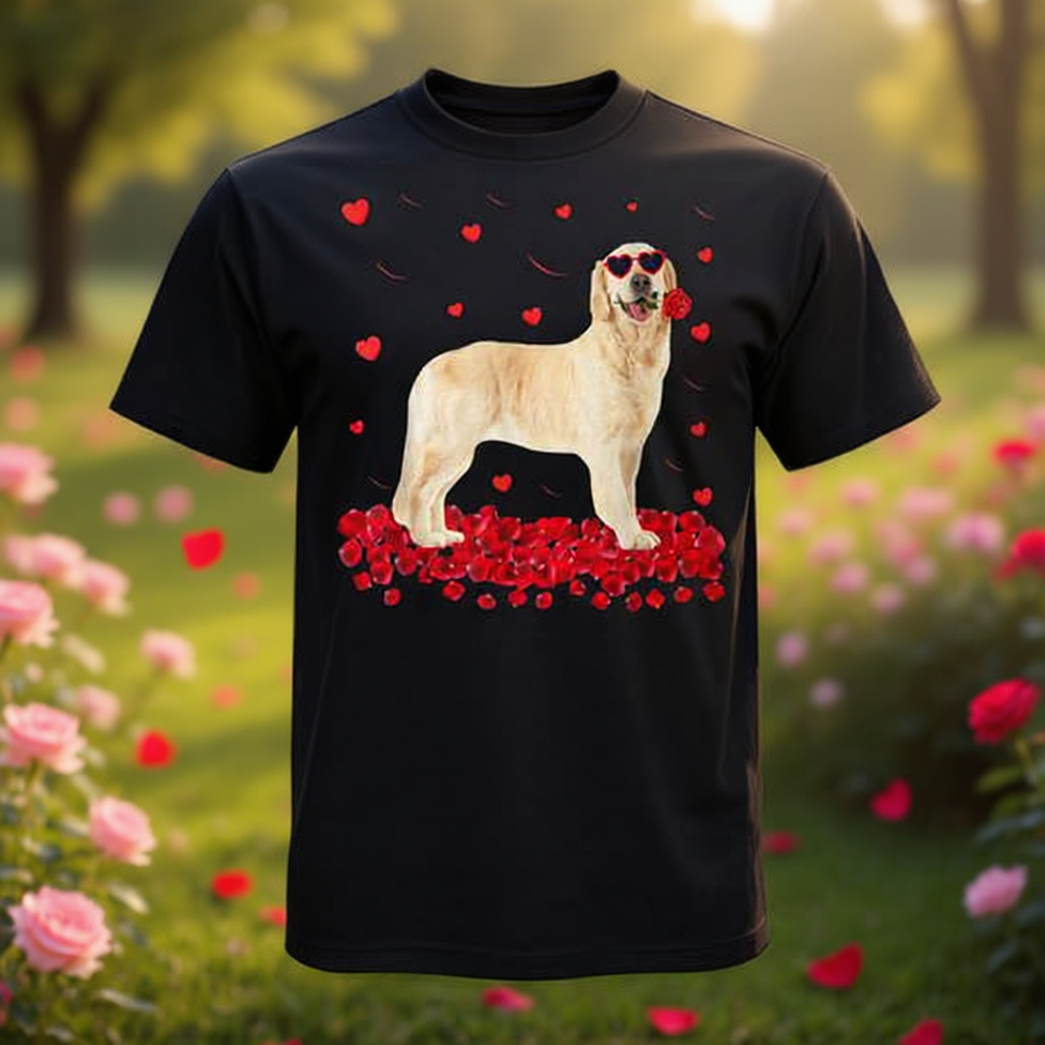 T-shirt per amanti dei cani Golden Retriever Heart per San Valentino