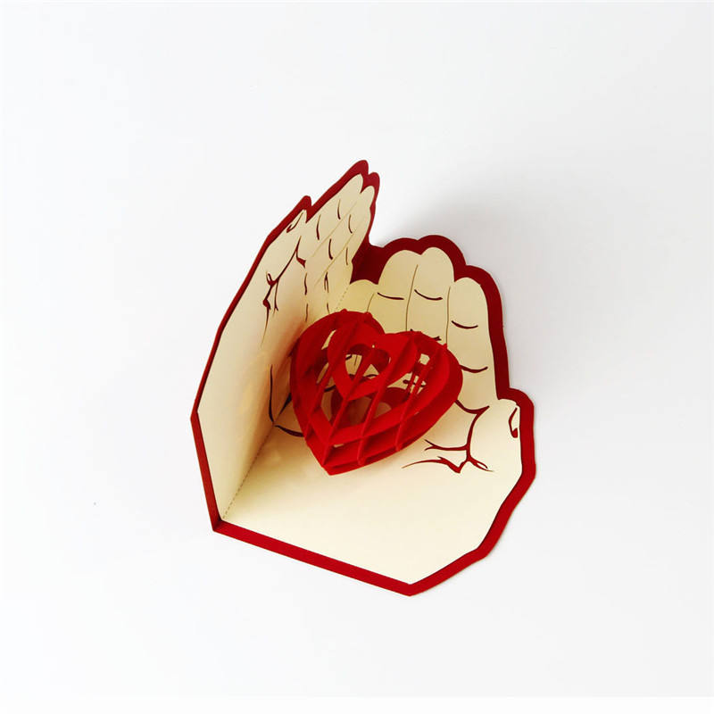 Biglietto d'Auguri 3D Pop-up per San Valentino con Intaglio in Carta, Stampa Offset, Amore nel Palmo della Tua Mano, Auguri di Compleanno