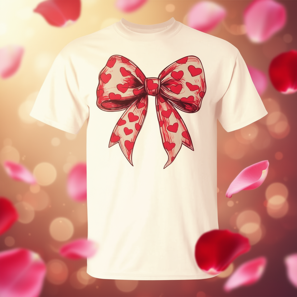T-shirt con fiocco a cuore rosso per San Valentino per donne, ragazze e bambini