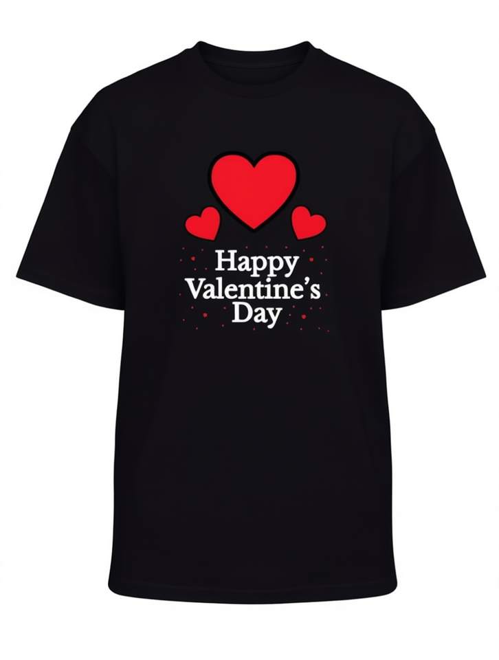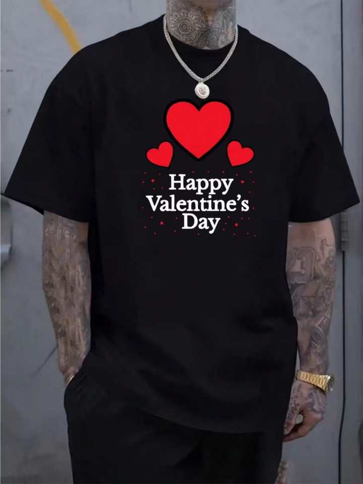 Valentine's Day T-Shirt For Men Black Short Sleeve Round Neck Red Heart Print Casual Valentine Gift Machine Washable 100 Cotton
