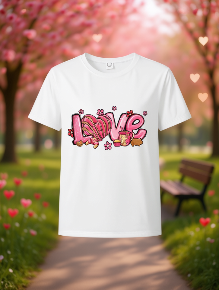 Valentine's Day Women's Casual T-Shirt Short Sleeve Round Neck 100% Cotton Breathable Lightweight Love Letter Print Pattern
