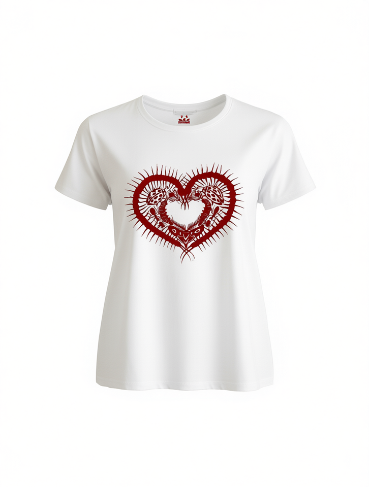 Valentine's Day Women's T-Shirt Short Sleeve Round Neck Heart Animal Print Casual Fashion Top 100% Cotton Jersey Winter Style