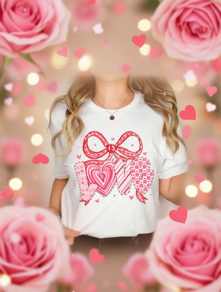 Valentine's Day Women's White T-Shirt With Ribbon Bow Print Round Neck Regular Sleeve Casual Jersey Top Spring Summer