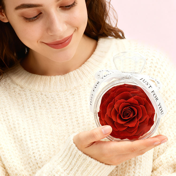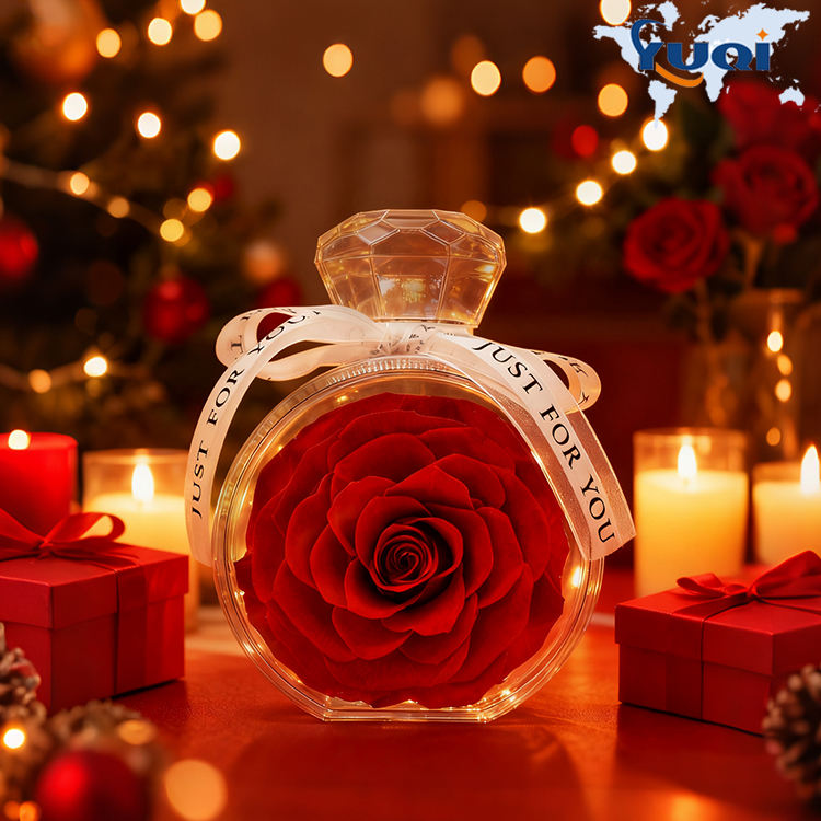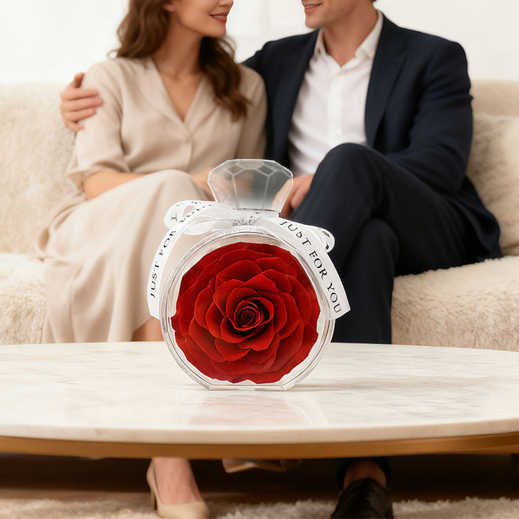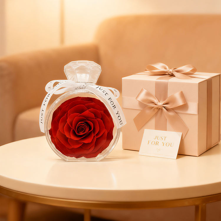 Rose Eterne per San Valentino, Fiori Immortali, Rose Conservate per Sempre in Scatola di Vetro Acrilico con Bottiglia di Profumo