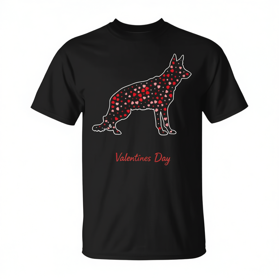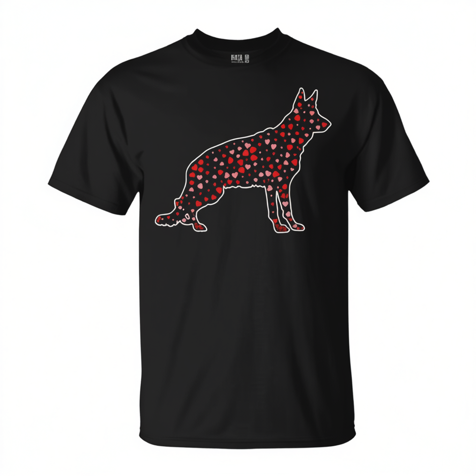 T-Shirt con Cuore di Pastore Tedesco per San Valentino, Abbigliamento Promozionale per Amanti dei Cani