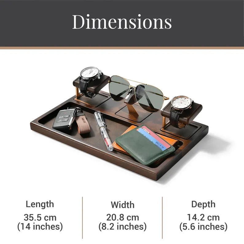 Valentines Day Gifts for Him Nightstand Organizer Docking Station Valet Tray for Watch Phone Glasses