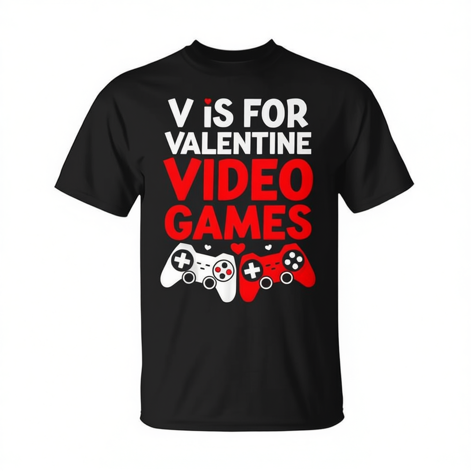 Maglietta per il Giorno di San Valentino con scritta 'V' per Videogiochi, Abbigliamento Promozionale NS per Gamer
