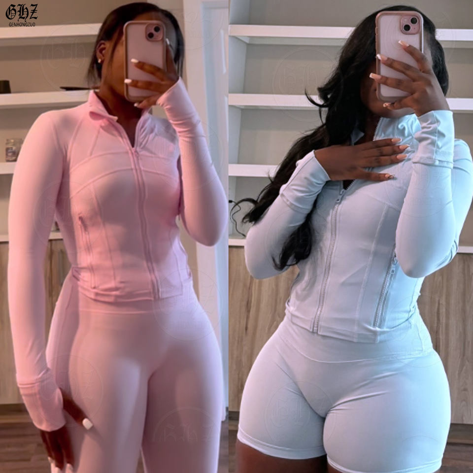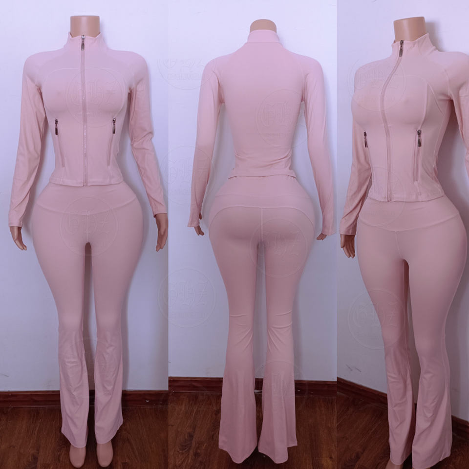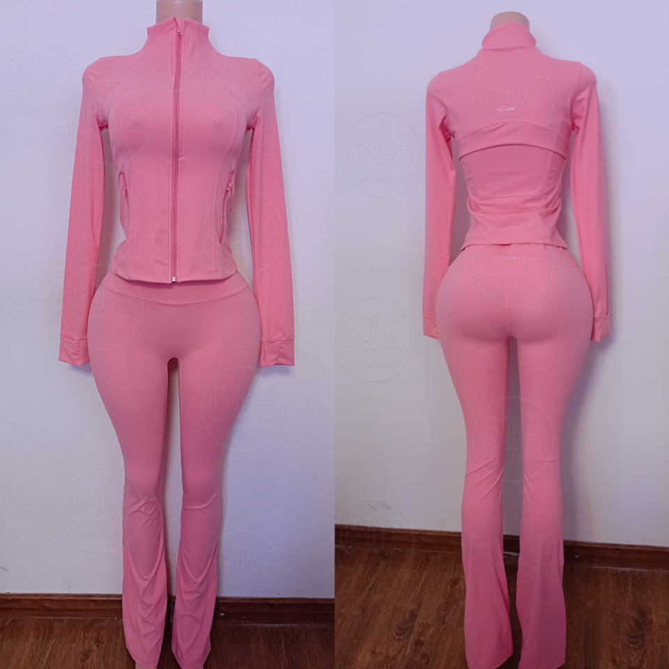 Set di san valentino rosa con LOGO personalizzato tuta sportiva da donna allenamento Yoga giacca a zampa pantaloni due pezzi tuta da donna
