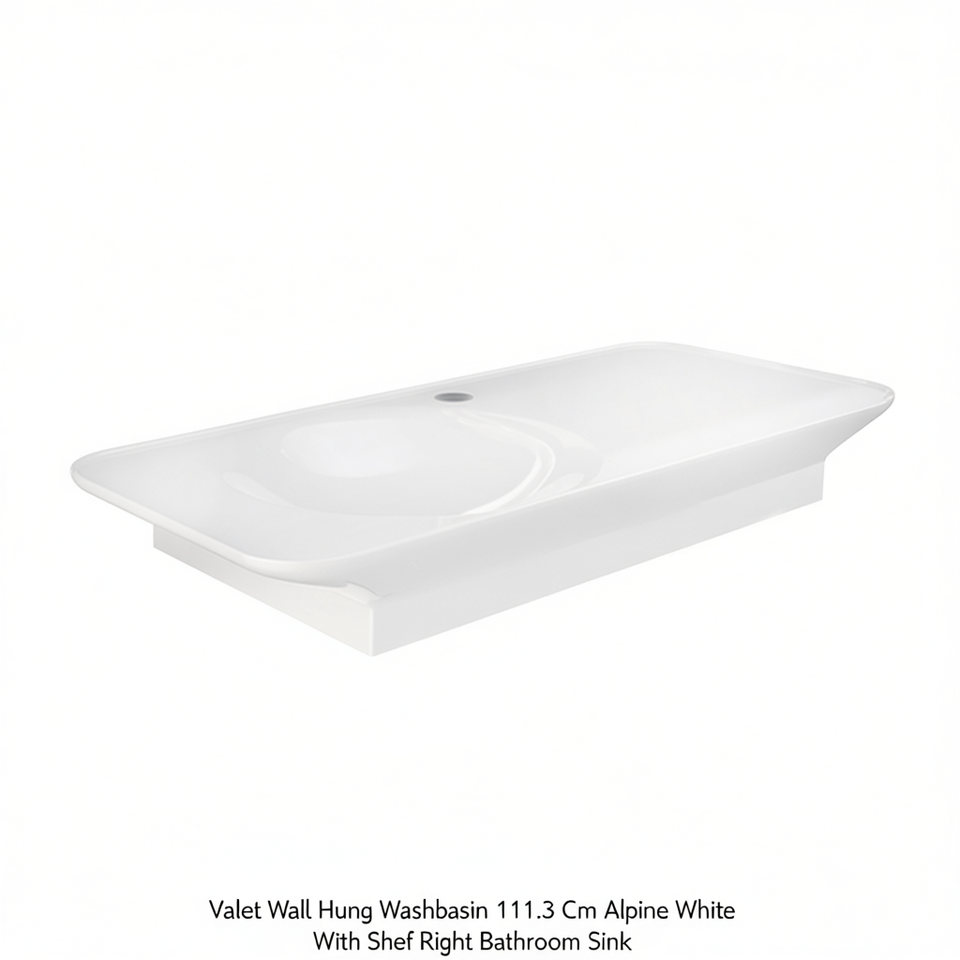 Lavabo da Parete Valet 111,3 cm Bianco Alpino con Mensola Destra per Bagno