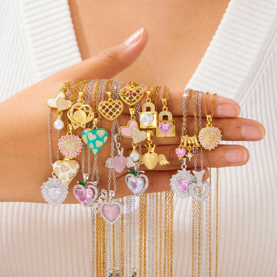 Variety Love Pendant Series Stainless Steel Collarbone Chain Peach Heart Zircon Color Necklace Women Party 18K Gold Plated