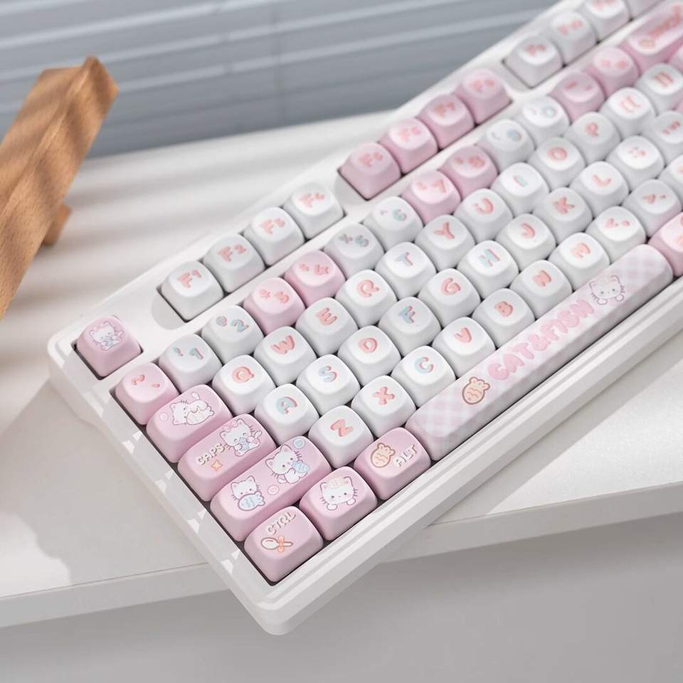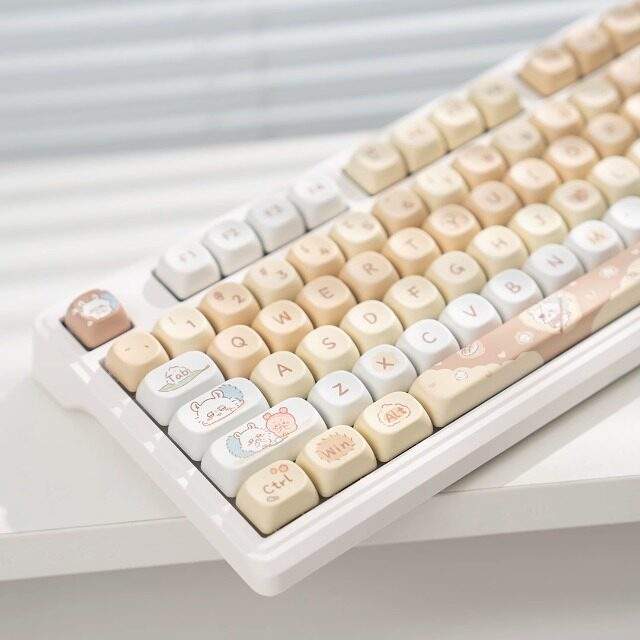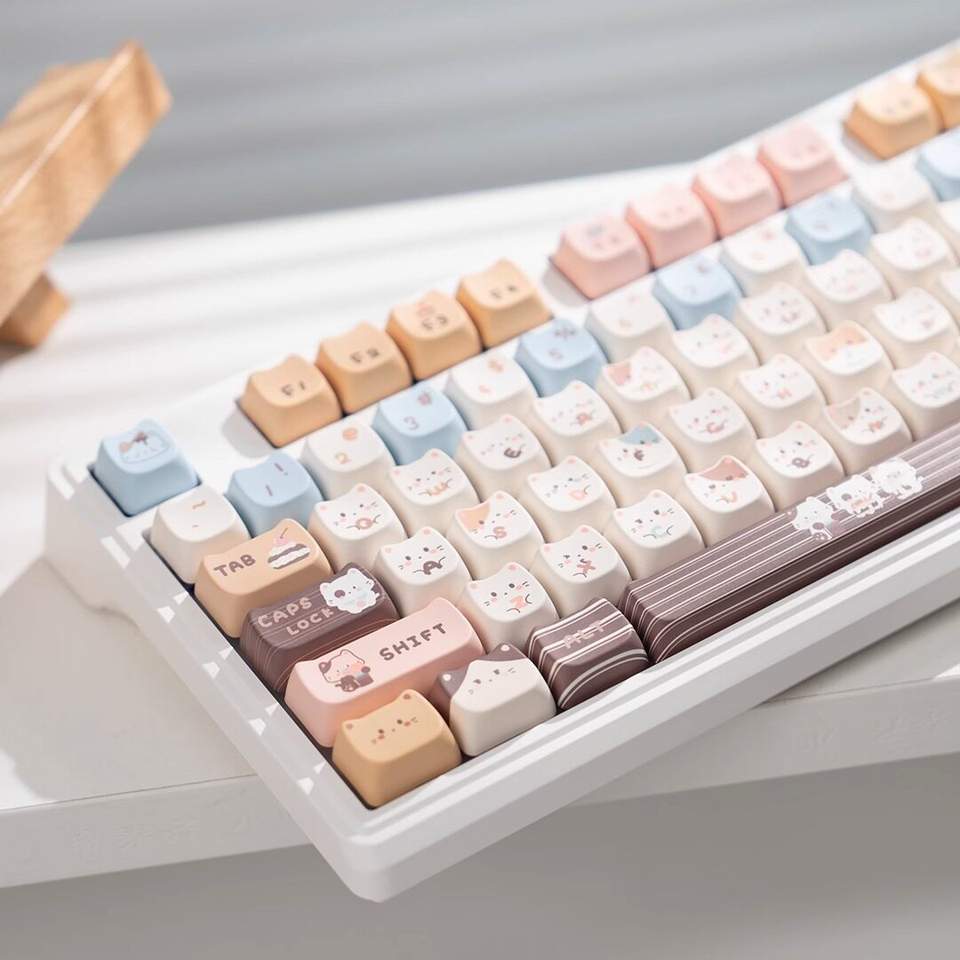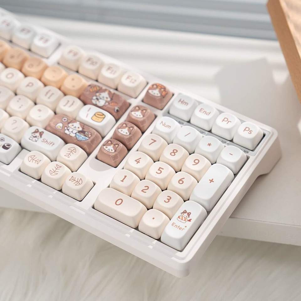 Tastiera Meccanica RGB Personalizzata YG102 a Tripla Modalità con Vari Tipi di Keycaps Cartoon MOG/Mao, Personalizzata per Ragazze e Uso in Ufficio