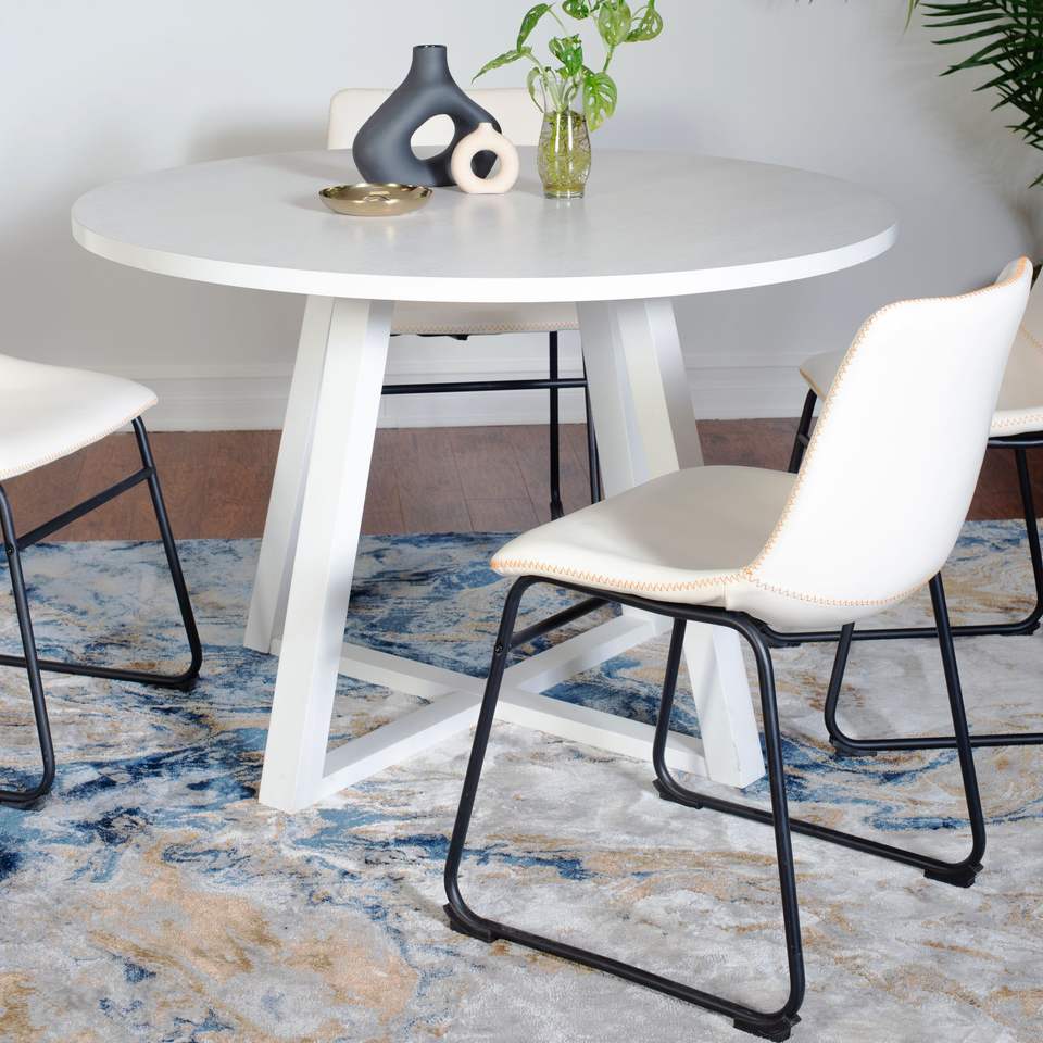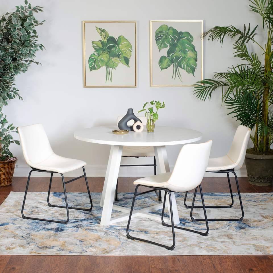 Set da Pranzo Rotondo Varna 5 Pezzi, Elegante Tavolo a Cavalletto con 4 Sedie per Sala da Pranzo