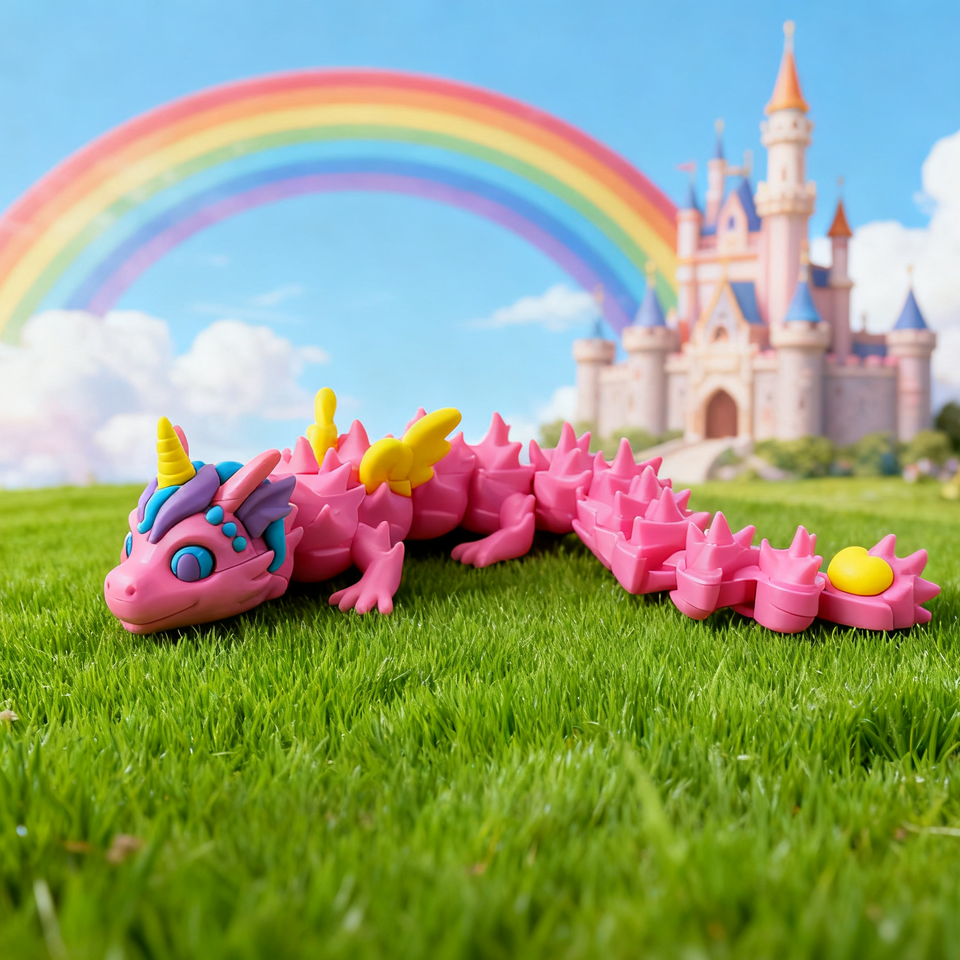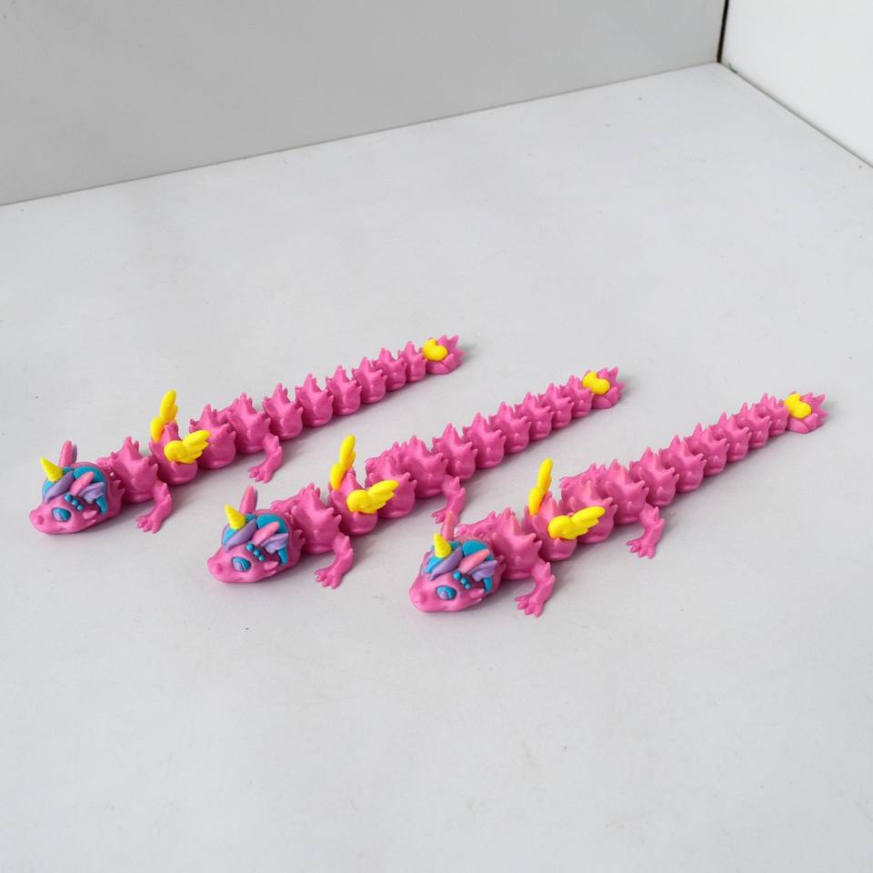 Vashine 3D Printed Funny unicorn Dragon Flexible Crystal Pink Dragon Colorful Children's Decoration 3D Action Figure Toys