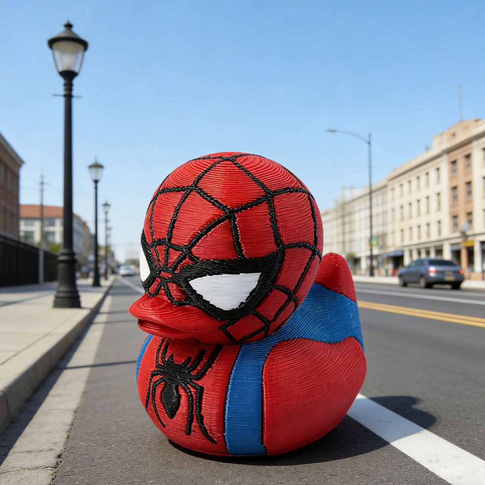 Peluche di Spider-Man a forma di papera stampato in 3D