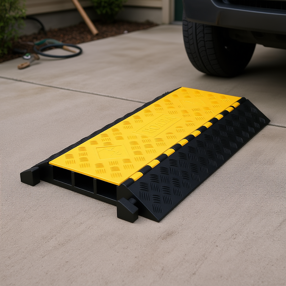 Rampa Protettiva per Cavi in Gomma a 3 Canali Vector 37x20, Capacità di Carico 44000 Libbre, Dissuasore di Velocità per Vialetti e Tubi