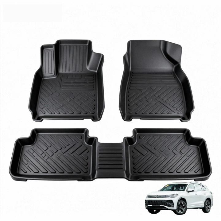 Tappetini 3D per Auto Resistenti alle Intemperie, Tappetini Antiscivolo in TPE per Interni Auto, per Volkswagen VW Tiguan 2009-2017, Tappetini per Sedili e Vano Bagagli