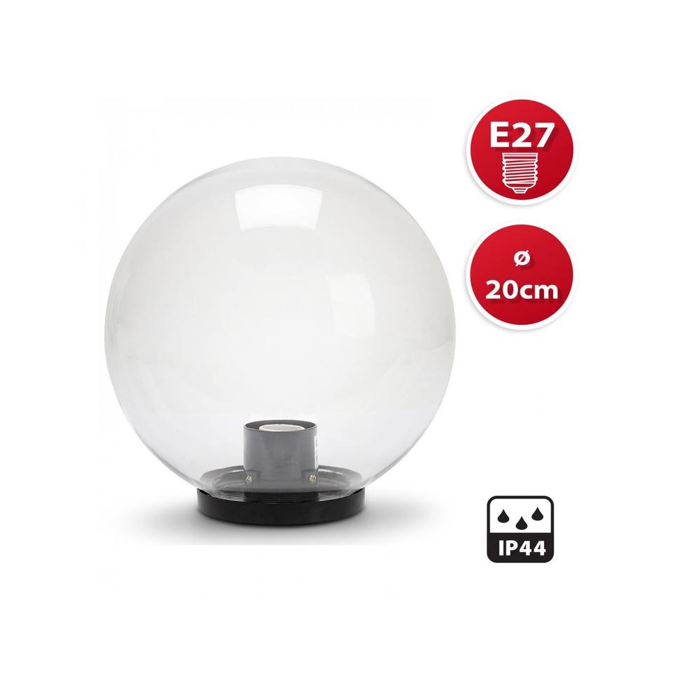 Velamp Outdoor Sphere Light 200mm E27 Socket Transparent PMMA IP44 Flush Mount Garden Lamp