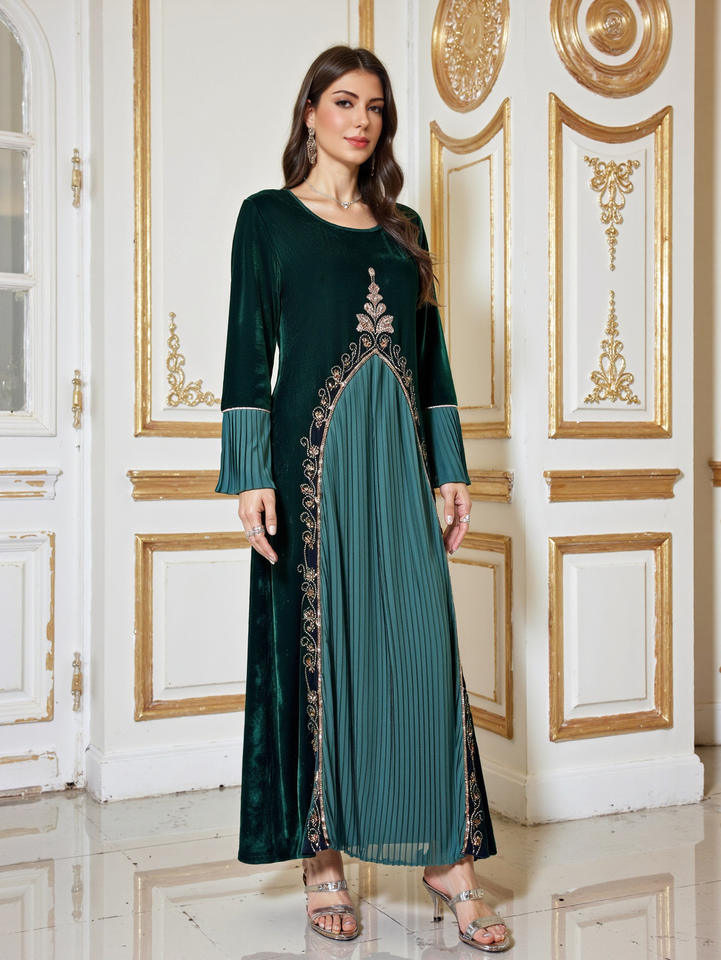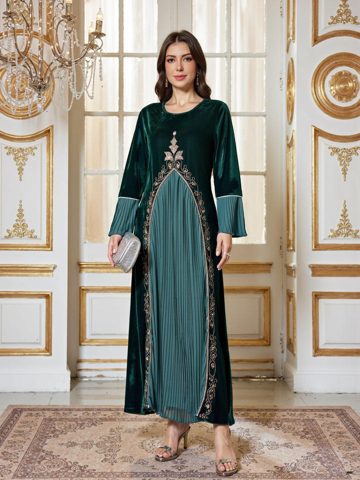 Velvet Abaya Women Muslim Dress 2025 Dubai Winter Dress Velvet Fashion Muslim Women Embroidered Dress Long Sleeves
