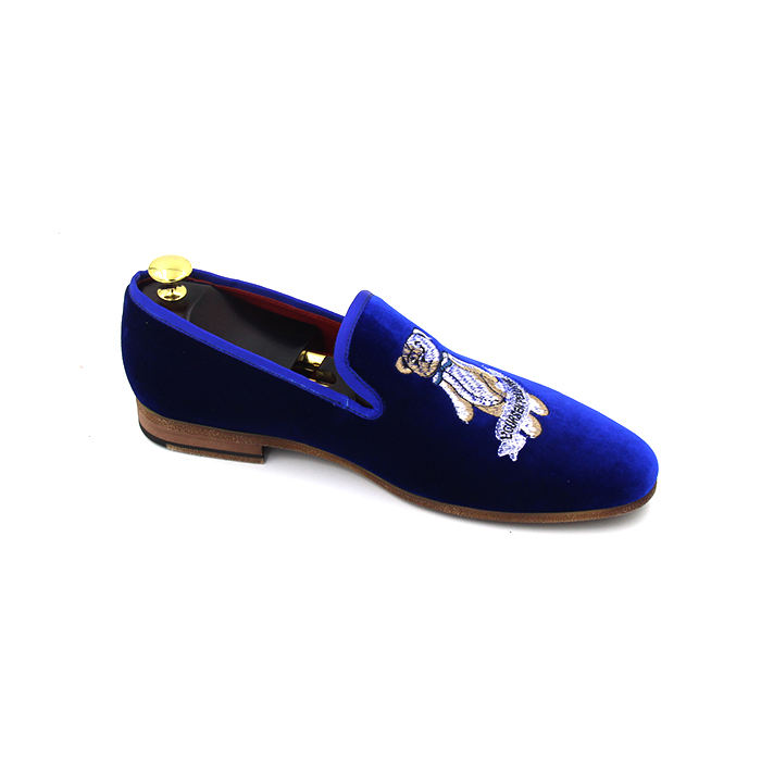 Velvet Silver Embroidery Loafers Man Shoes Office Shoes Winter Shoes Private Custom Wedding for Men Custom High Quality Blue