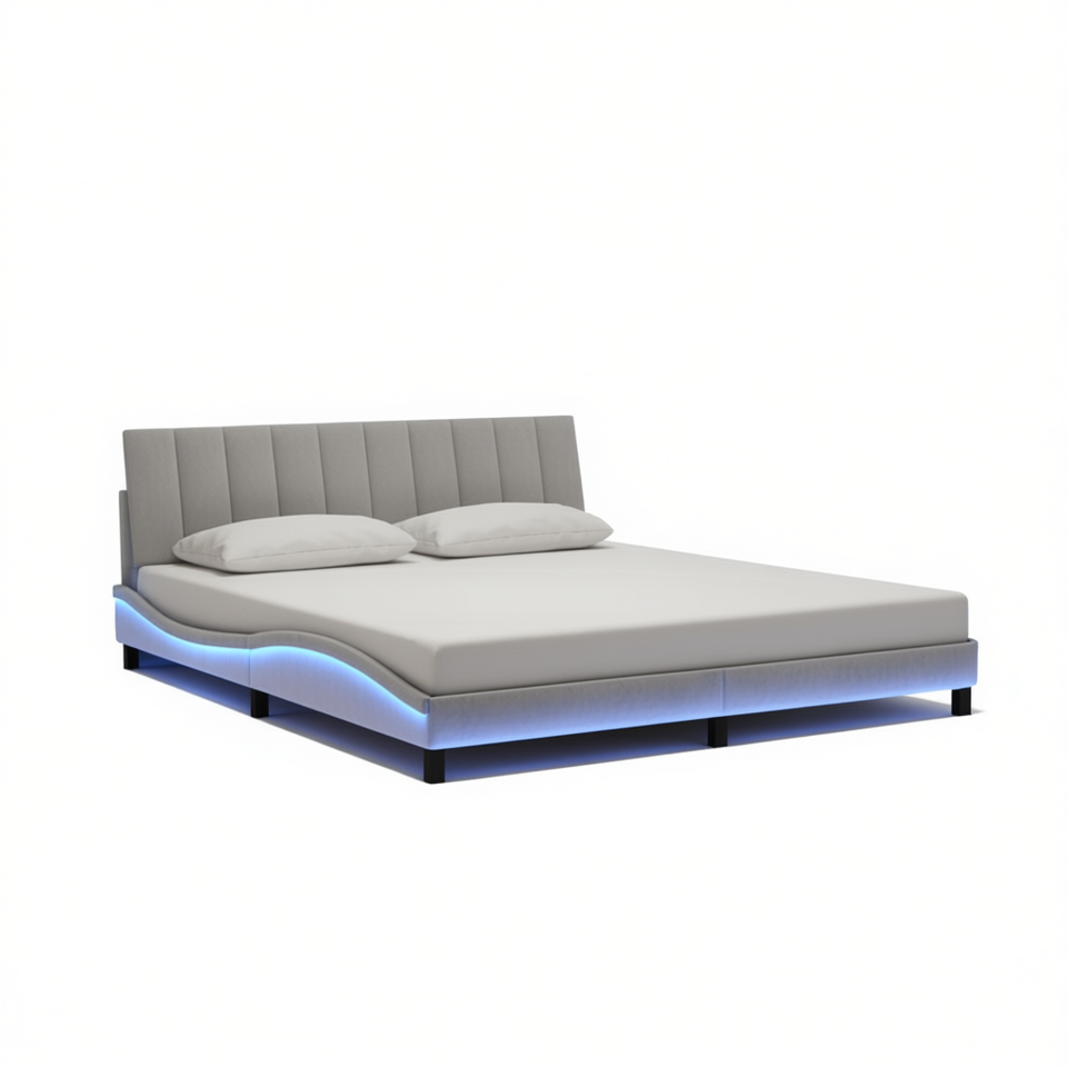 Letto Imbottito in Velluto King Size con Luci LED, Design Moderno, Colore Grigio