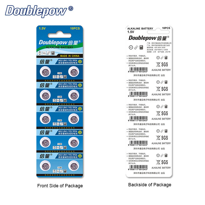 Hot Sale 10 PCs AG3 LR41 1.5 V Alkaline button cell coin battery, LR41, 192, 392A