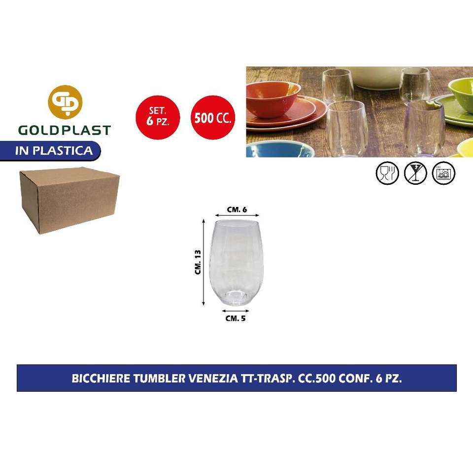 Set di 6 Bicchieri in Vetro Venezia Trasparenti CC.500, Articoli per Bevande in Plastica