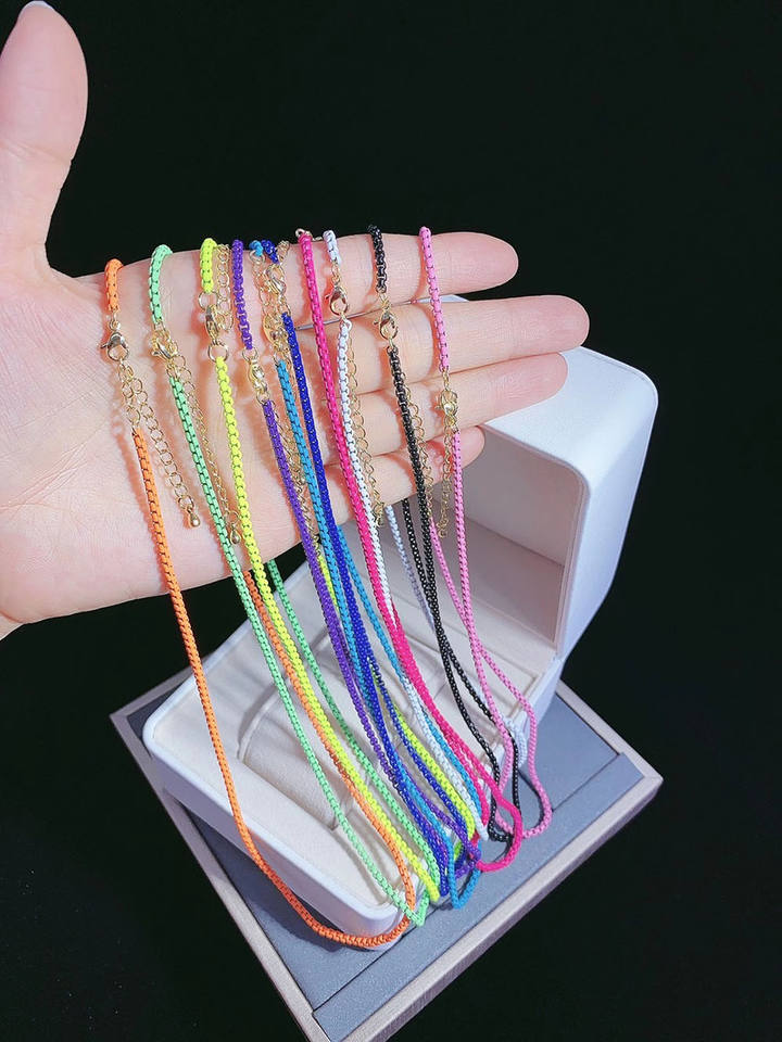 Venezian Style 18'' Women Necklace Enamel Box Chain Stainless Steel /Iron Colorful Link Chain Necklace