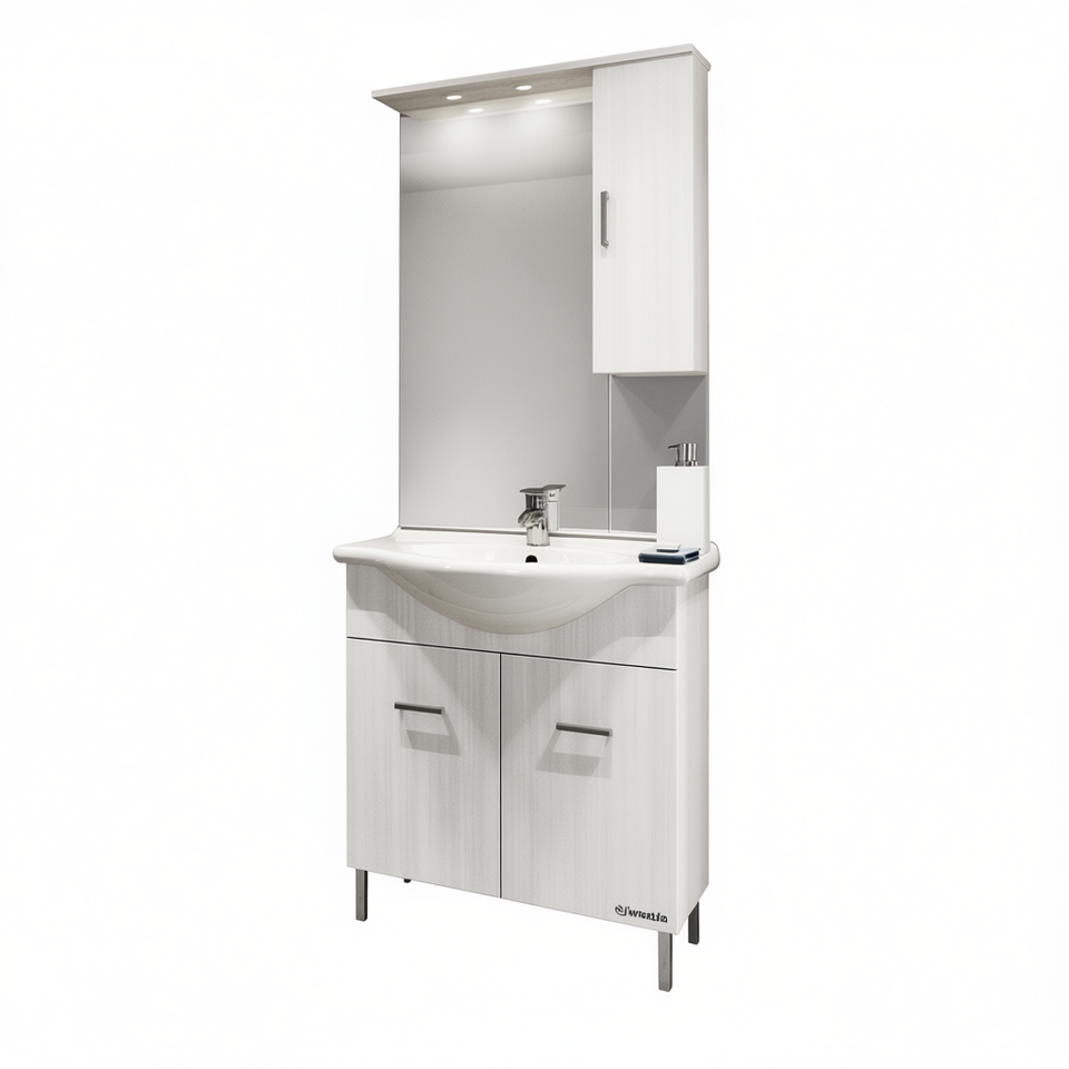 Mobile Bagno Venice 75 cm con Lavabo e Specchio Bianco Lucido