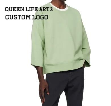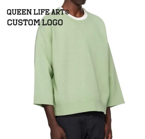 Tratti di verde. T-Shirt Oversize di Lusso Personalizzata OEM ODM, Tessuto Lavorato a Maglia 320gsm, Collo a O, T-Shirt Boxy 300g
