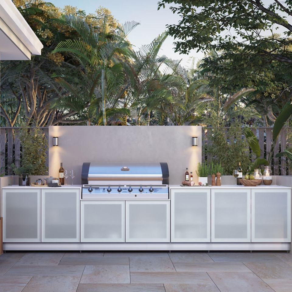 Armadio da cucina in vetro in alluminio moderno e modulare da esterno