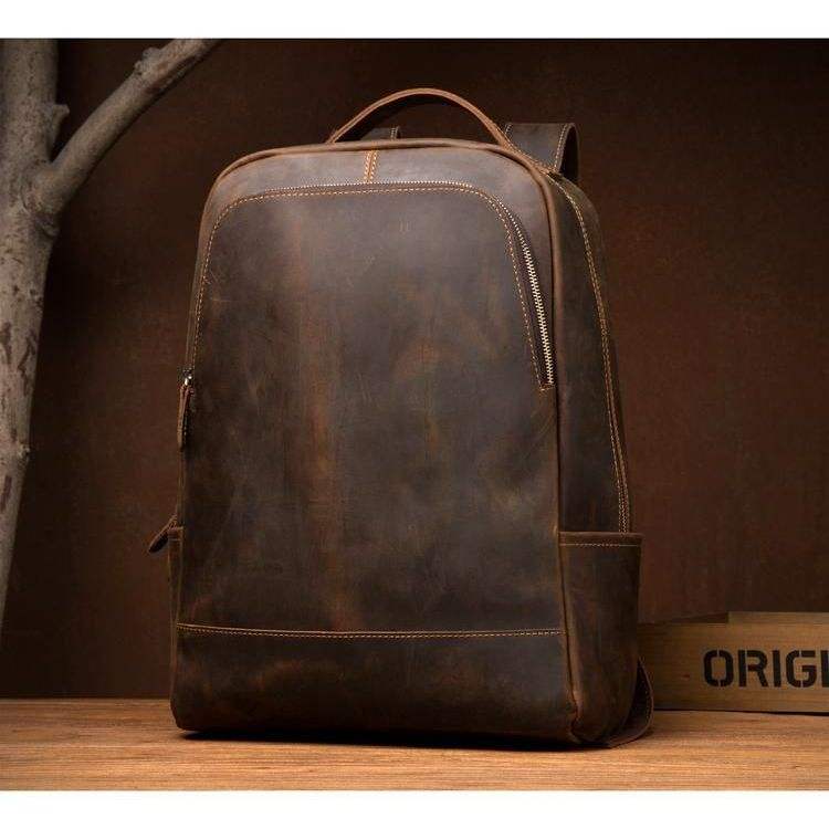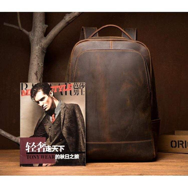 Vernon Men's Minimalist Vintage Leather Backpack Genuine Vintage Leather Style