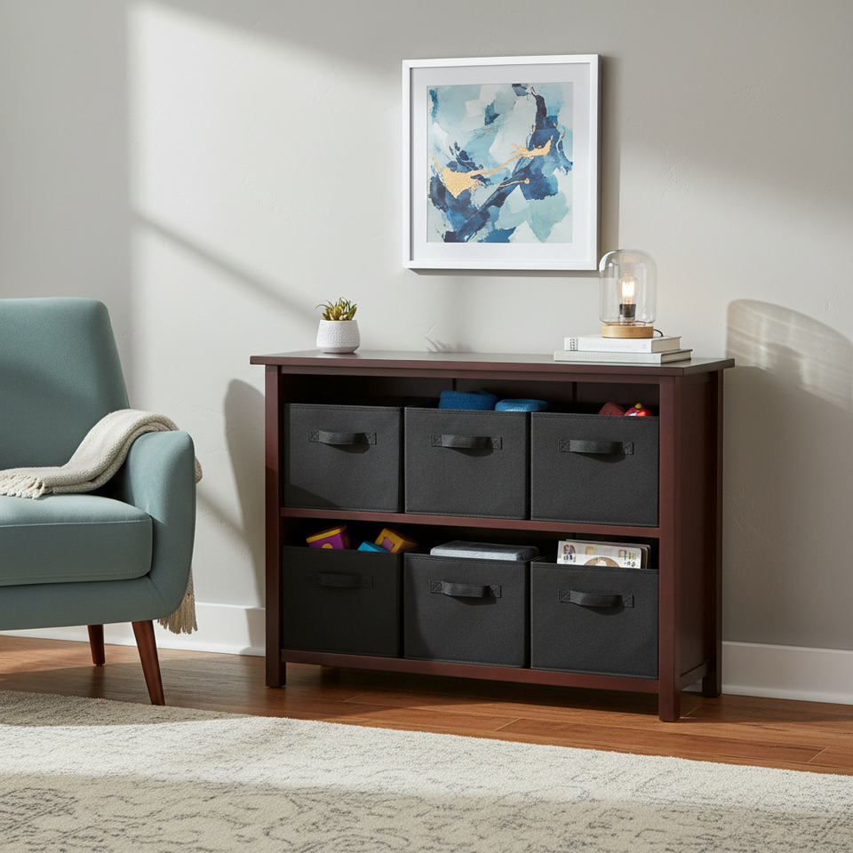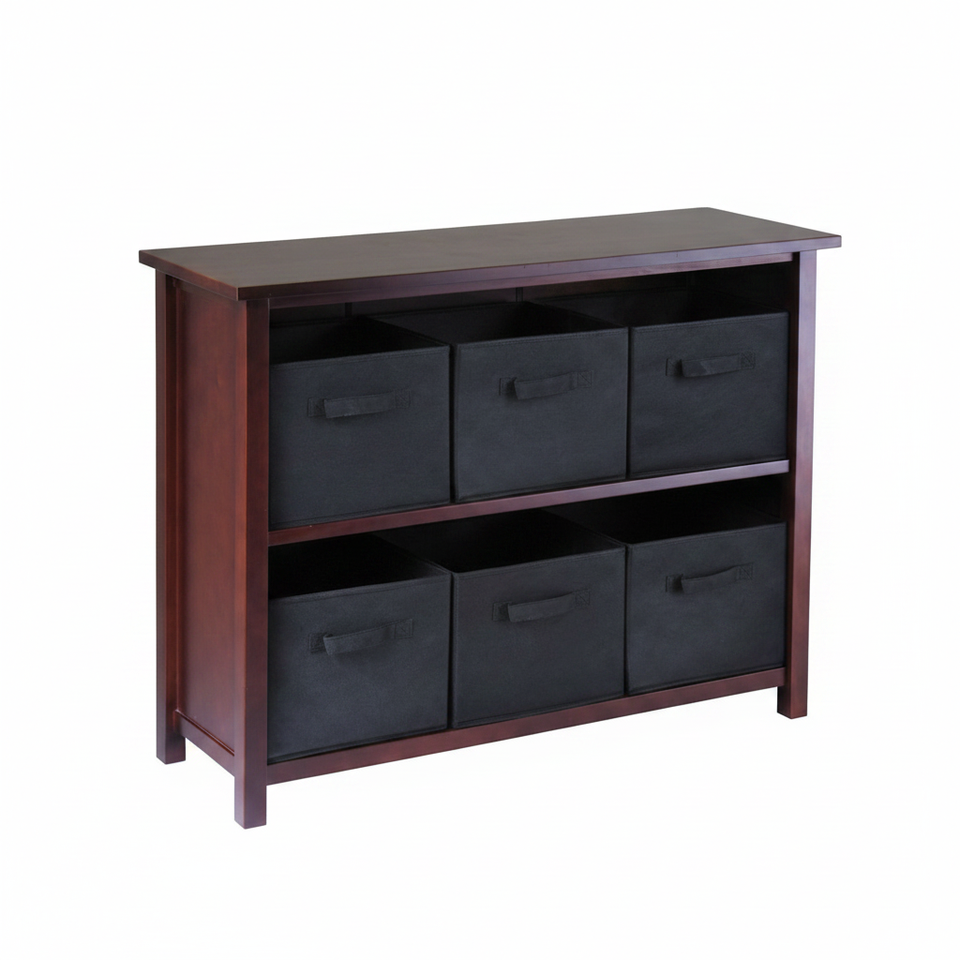 Verona mensola a 2 sezioni con 6 cestini in tessuto nero pieghevole