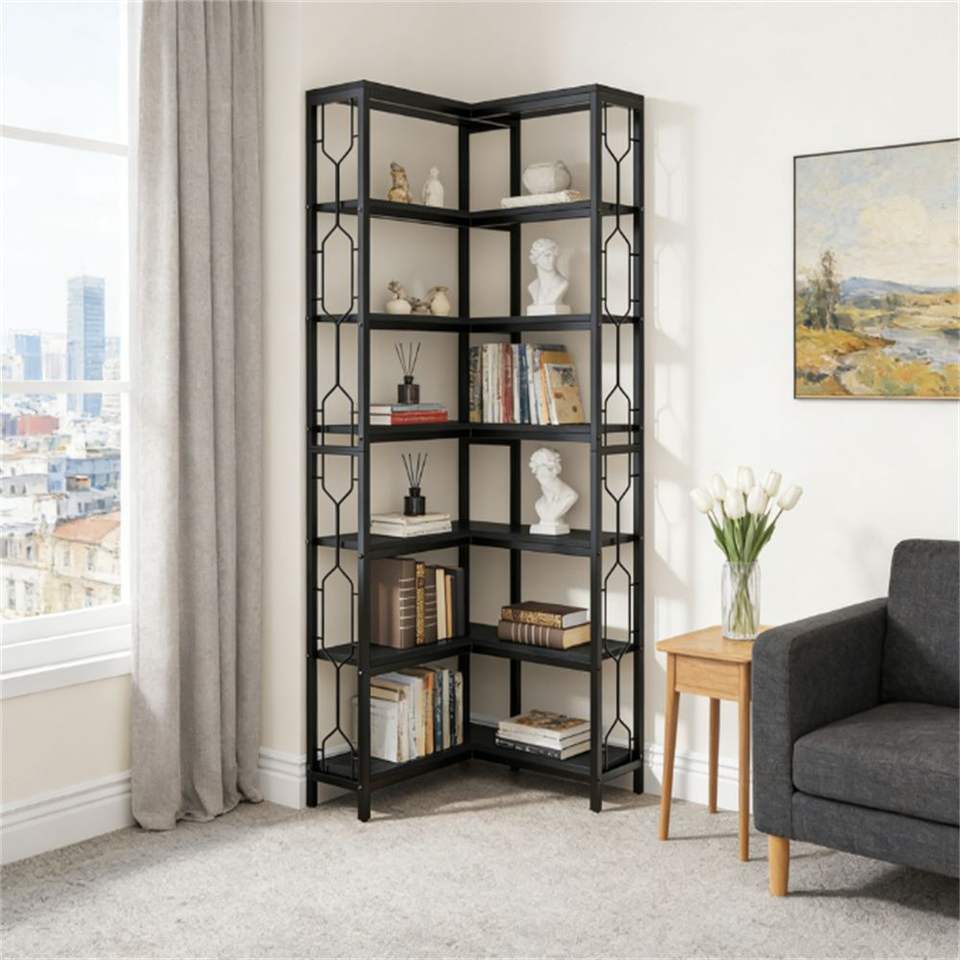 Libreria ad Angolo Verticale e Scaffale Espositivo per Piante e Libri, Elegante Libreria