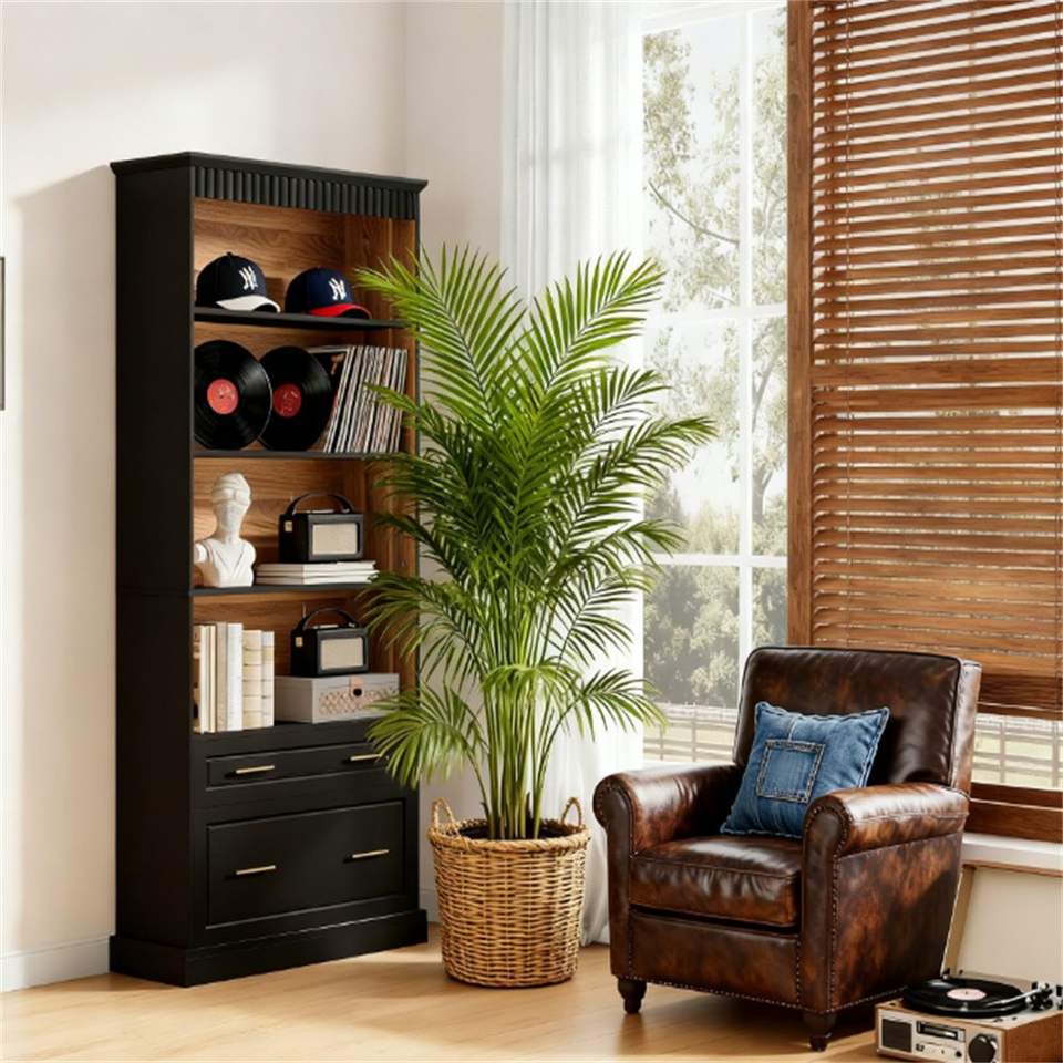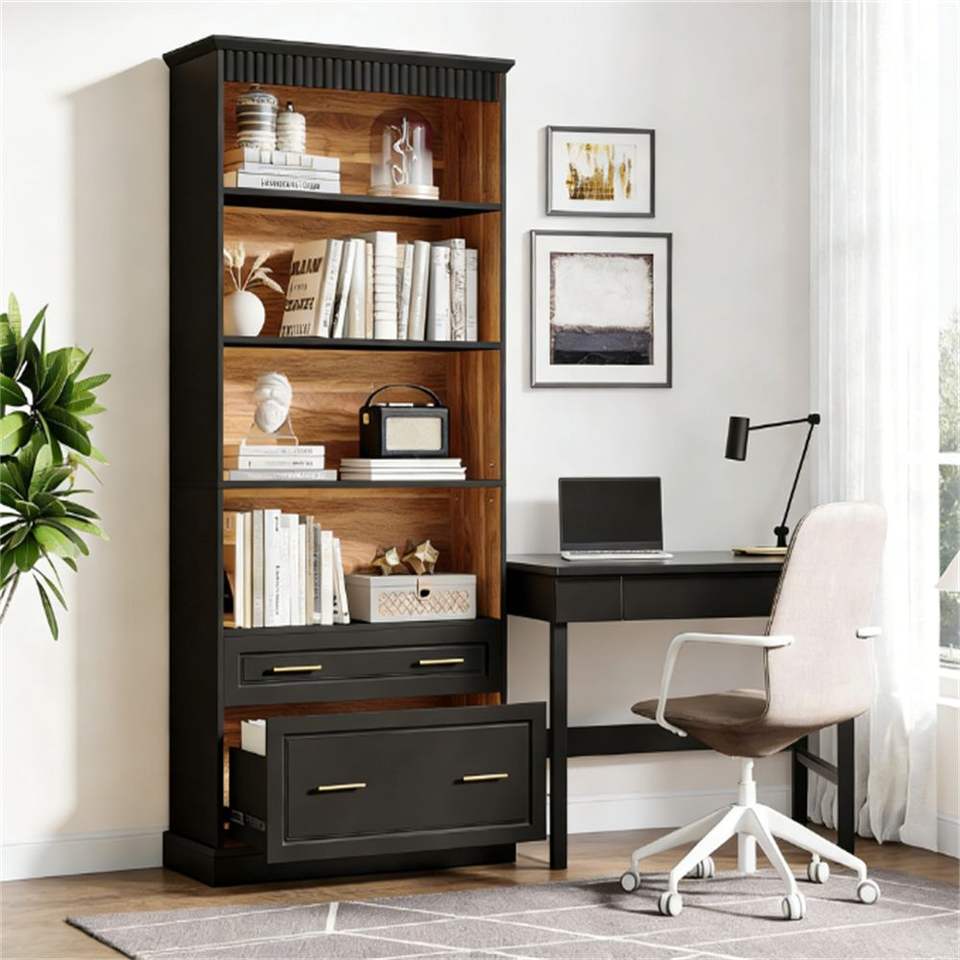 Libreria Verticale con Ripiani e Spazio di Archiviazione