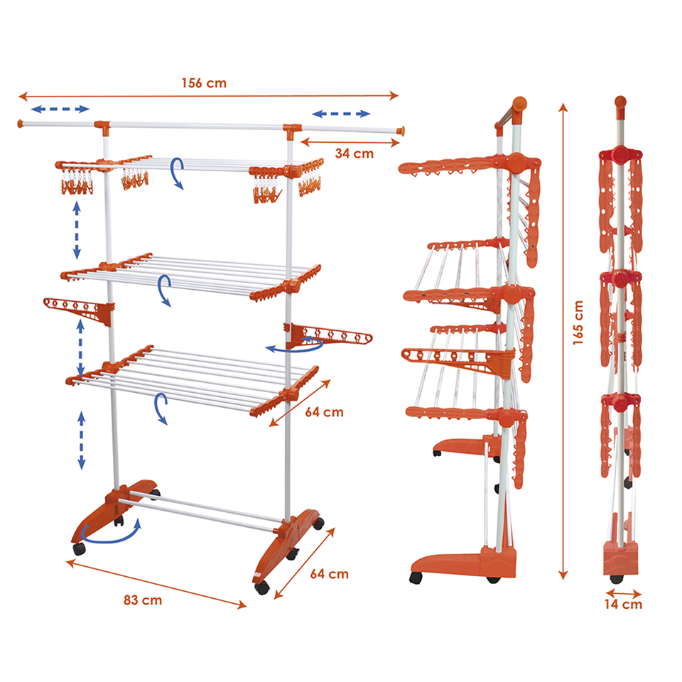 Stendibiancheria Verticale Pieghevole in Acciaio TendoSpazio 24 Metri Regolabile con Ruote Design Smontabile per Pulizia Vestiti