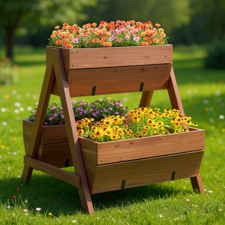 Fioriera Verticale Rialzata a 3 Livelli in Legno Semplice per Giardinaggio Domestico Modello D0100HAXY0V