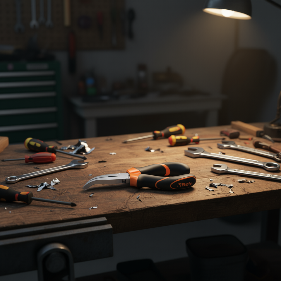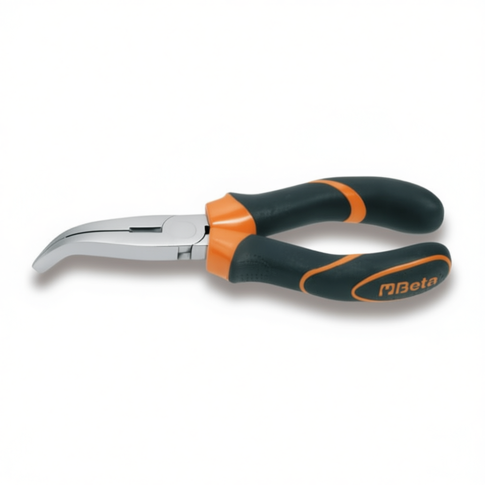 Pinze a becchi piatti molto lunghe e curvate con impugnature bimateriale