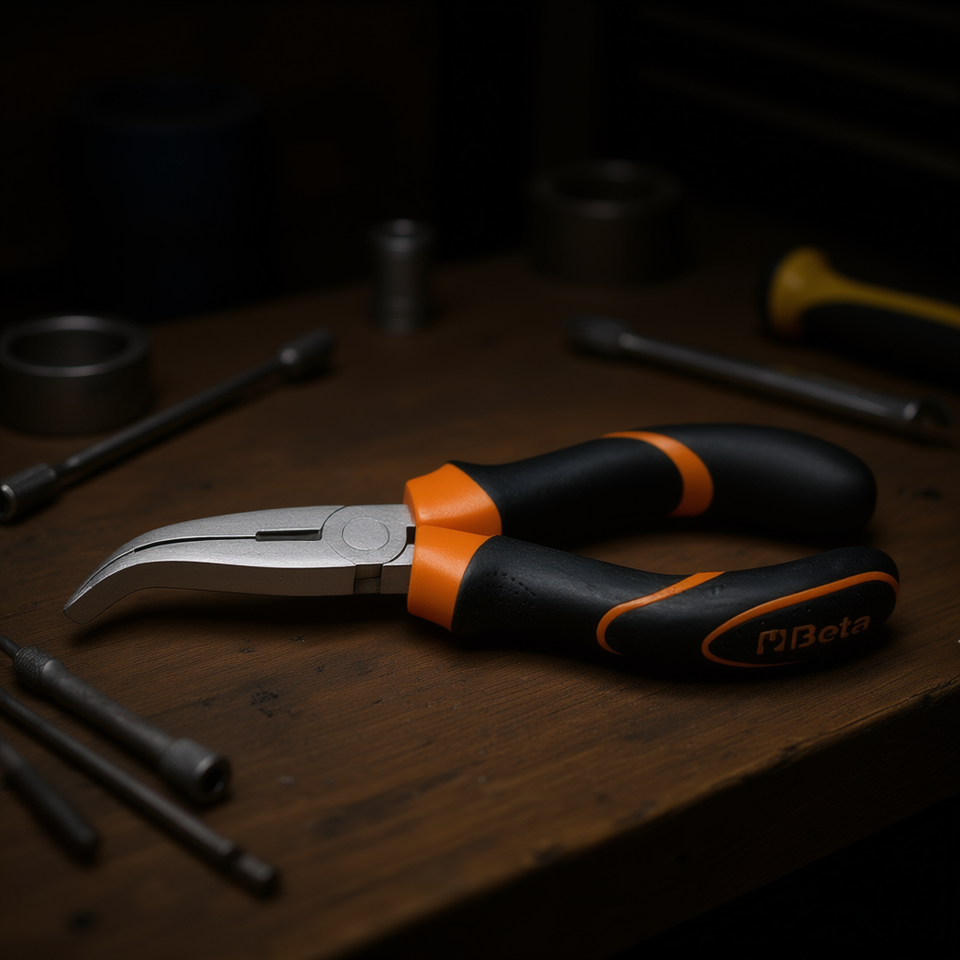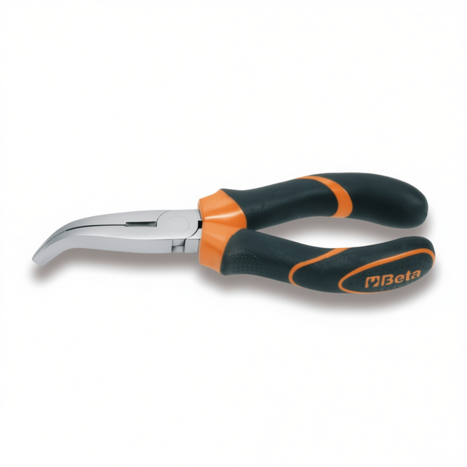 Pinze a becchi piatti molto lunghe e curvate con impugnature bimateriale