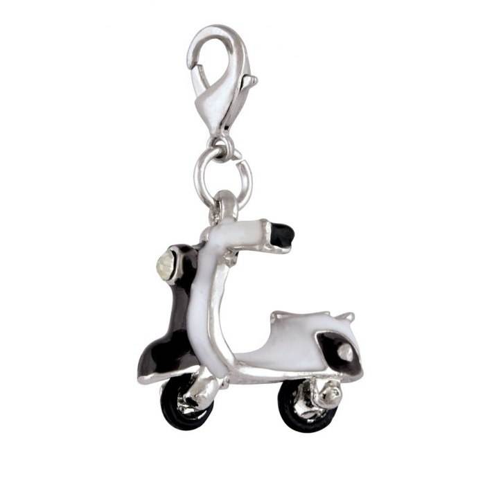 Vespa White Scooter Charm Silver Plated Pendant Jewelry Accessory