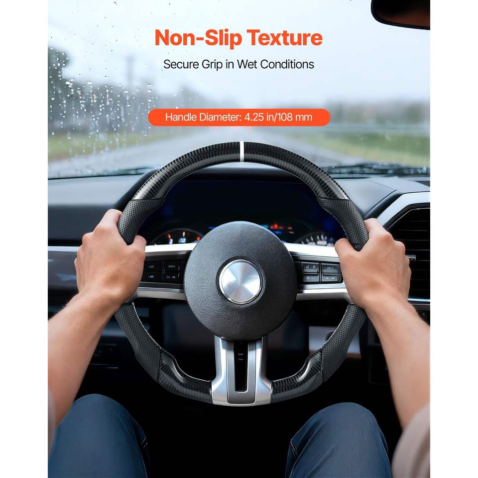 Vevor Carbon Fiber D-Shaped Steering Wheel For Ford Mustang 2010-2014 Leather Grip Flat Bottom Precise Non Slip Texture Black