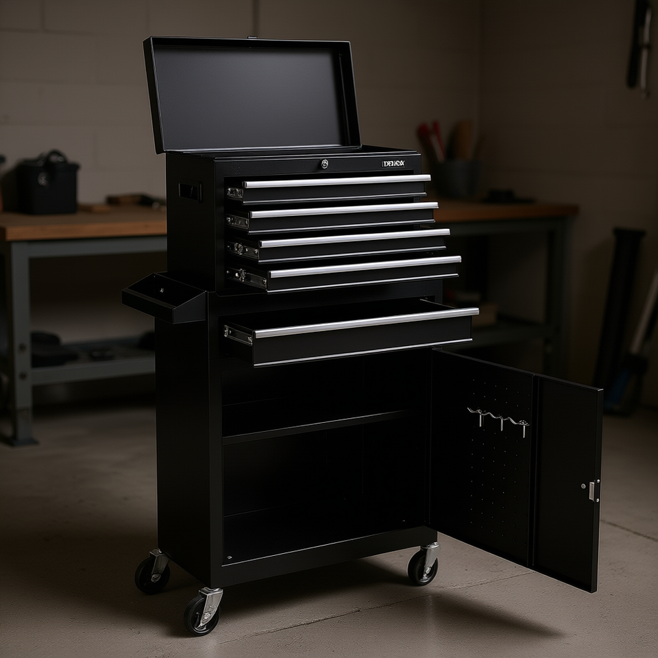 Vevor Rolling Tool Chest 5 Drawers Metal Cabinet Industrial Design Keyed Lock Garage Storage Cabinet