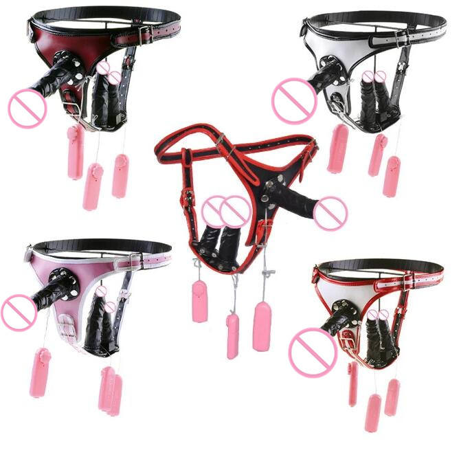 Cinturino vibrante a tre teste su Dildo anale pantaloni in pelle pene Strapon Plug anale mutandine per lesbiche Gay