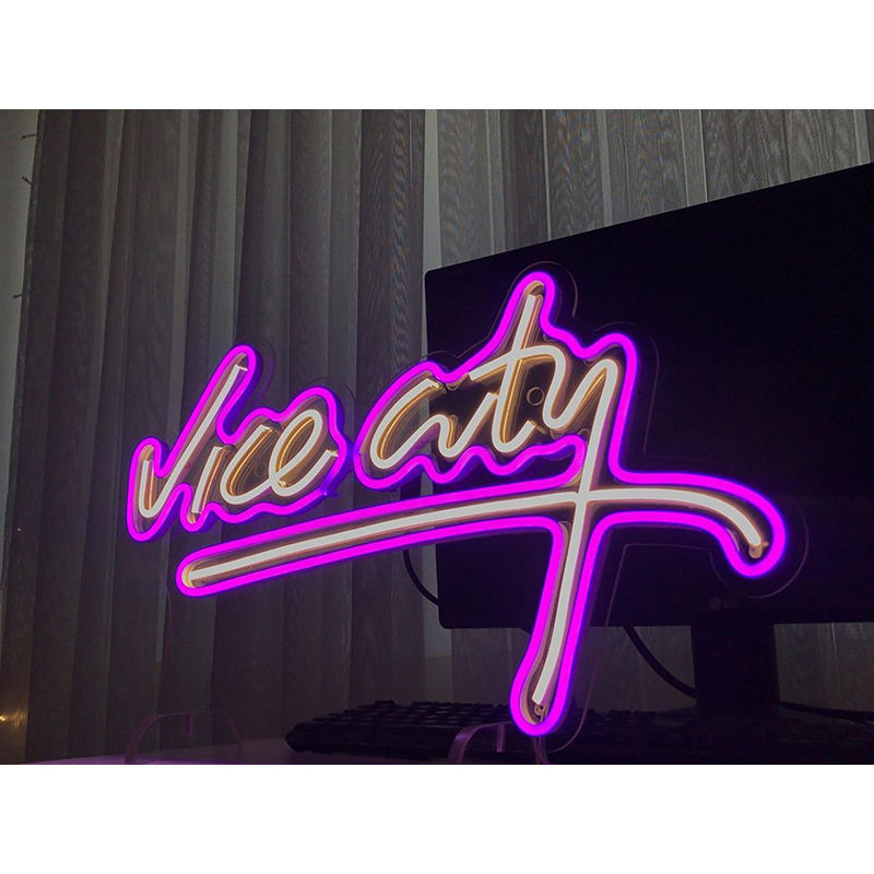 Insegna al Neon Personalizzata Vice City Rosa, Luci al Neon LED per Decorazione Murale, Alimentazione USB, Decorazione al Neon LED per Soggiorno e Ufficio