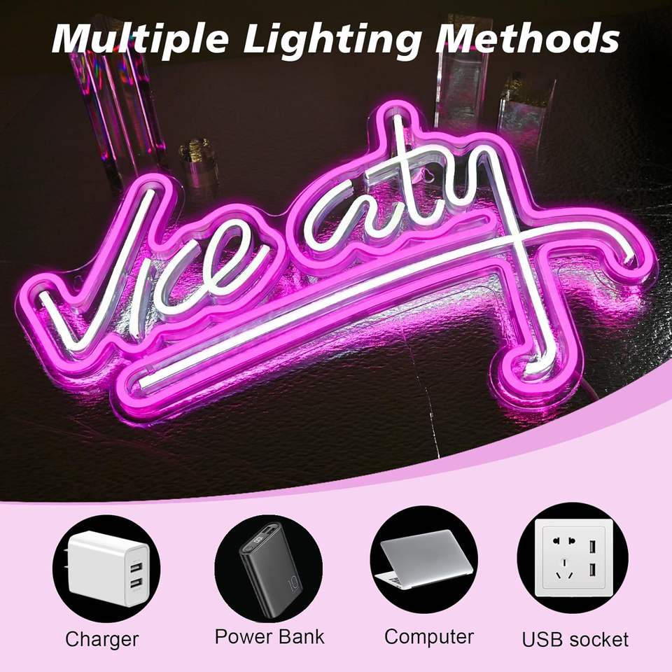 Luci al Neon alimentate da USB da Vice città segno a LED rosa per soggiorno camera da letto uomo zona giochi in grotta per Bar Sleep