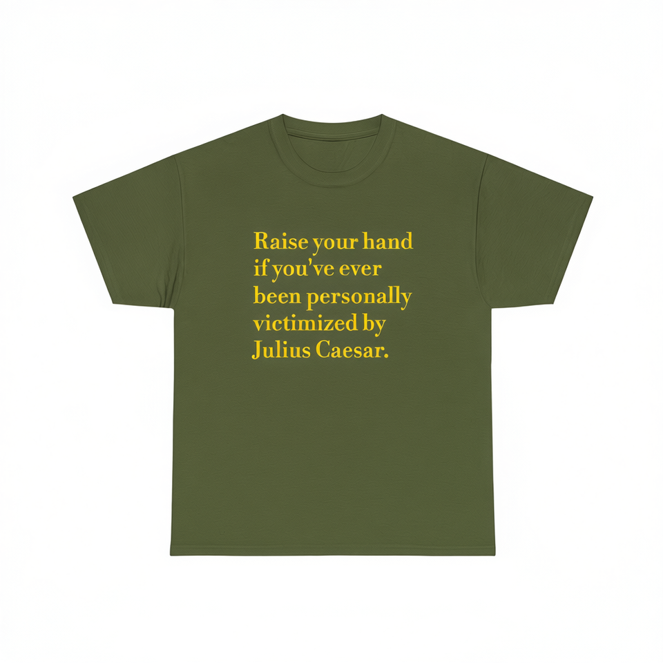 Maglietta 'Victimized By Caesar', T-shirt Impero Romano, Maglietta Meme Divertente, Regalo Scherzo Inadeguato, Maglietta 'Dumb Cursed'