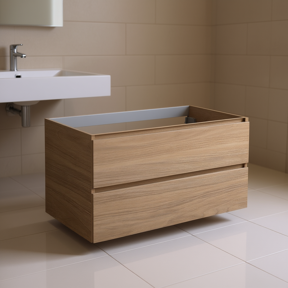 Mobile bagno e WC moderno a parete Vieste 90cm in rovere naturale con 2 cassetti