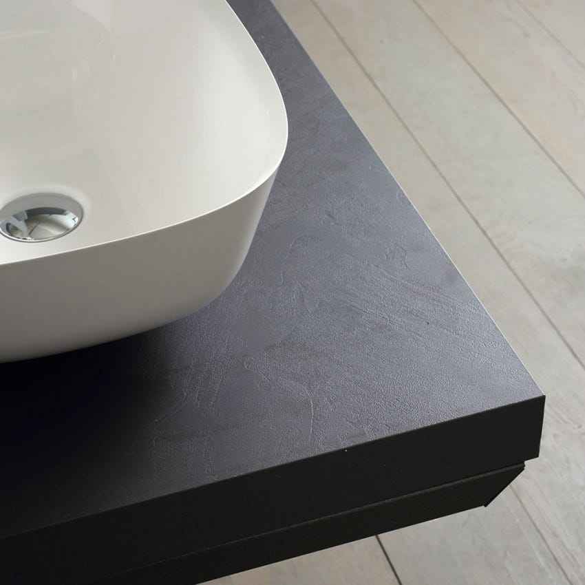 Lavabo da Appoggio Vieste con Top in Legno Grigio 60x40x30cm, Mensole a Parete a Singolo Livello, Finitura Laccata, Design Minimalista