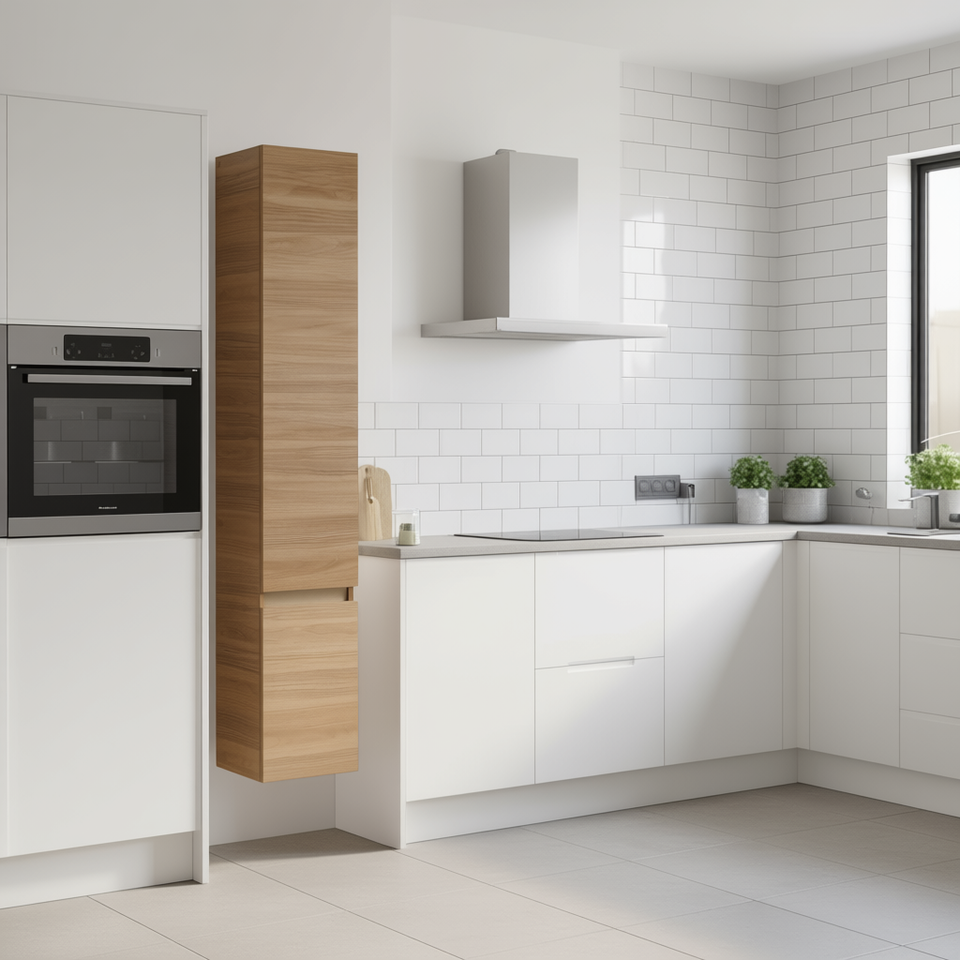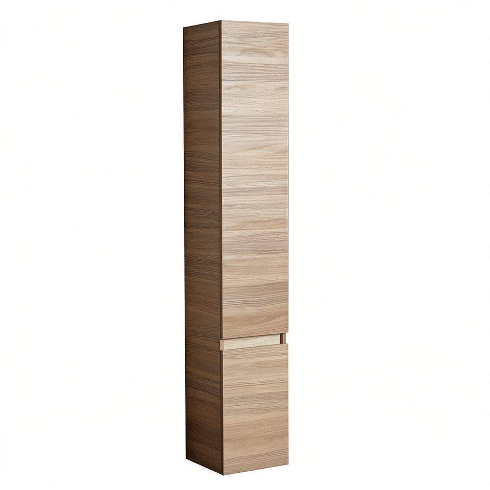 Vieste Italian Double Tier 2-Door Natural Oak Minimalist Durable Bathroom Wall-Mounted Suspended Column Shelving Unit