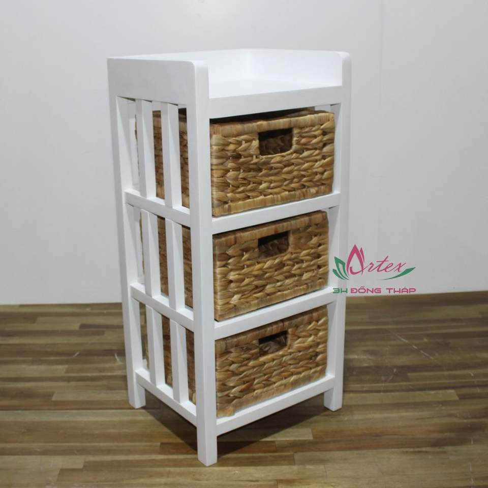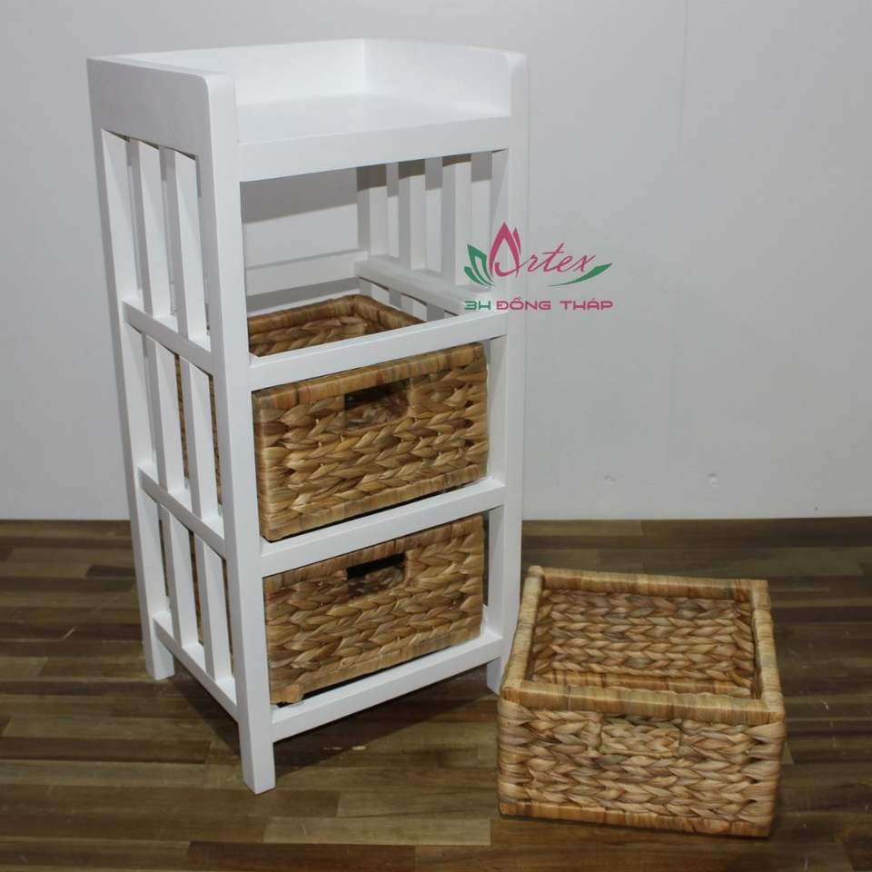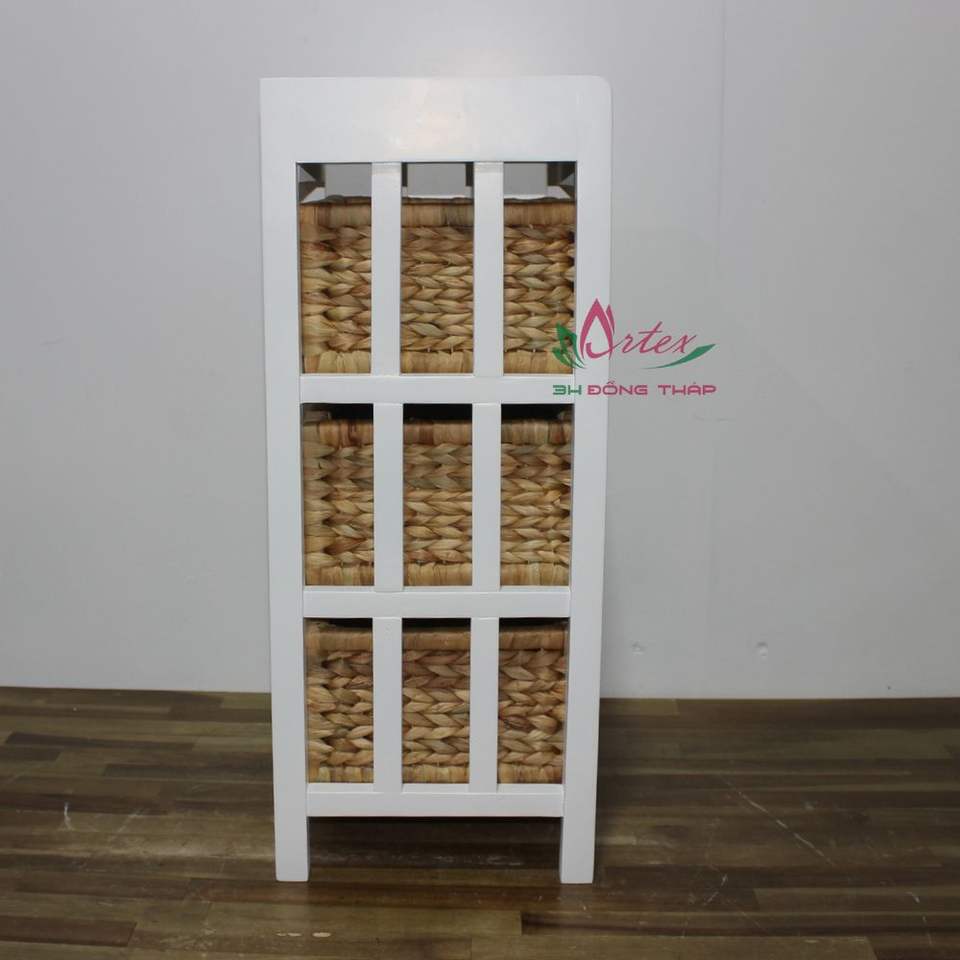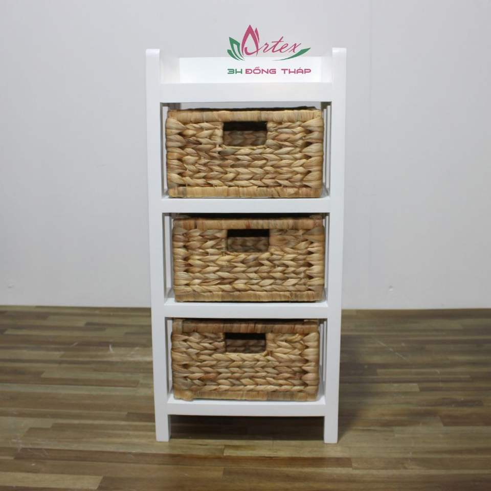 Vietnamese Handcrafted Bohemian Style Cabinet Water Hyacinth Drawers Wooden Shelf for Home Organization Living Room Decoration
